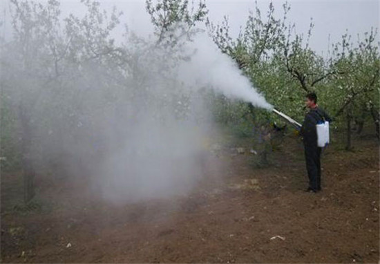 5、提溫防凍:在春季果樹發(fā)芽時(shí),該機(jī)加上煙霧劑后,噴煙可提溫,防止凍花凍果,減少損失。